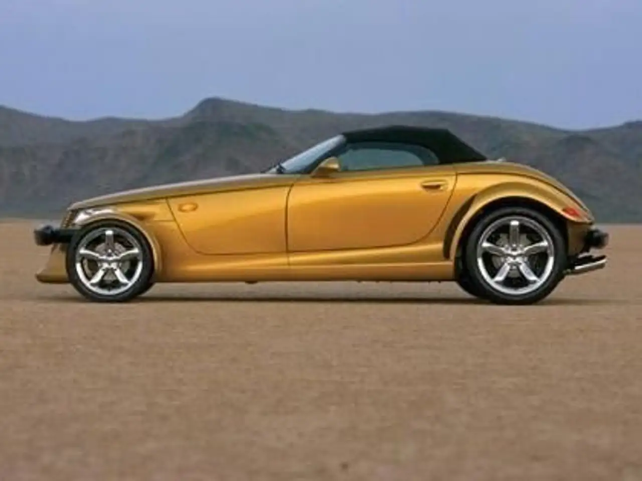 Ce Plymouth Prowler est un roadster américain au style rétro, habillé de la teinte élégante Inca Gold exclusive aux 147 derniers modèles construits en 2002.
