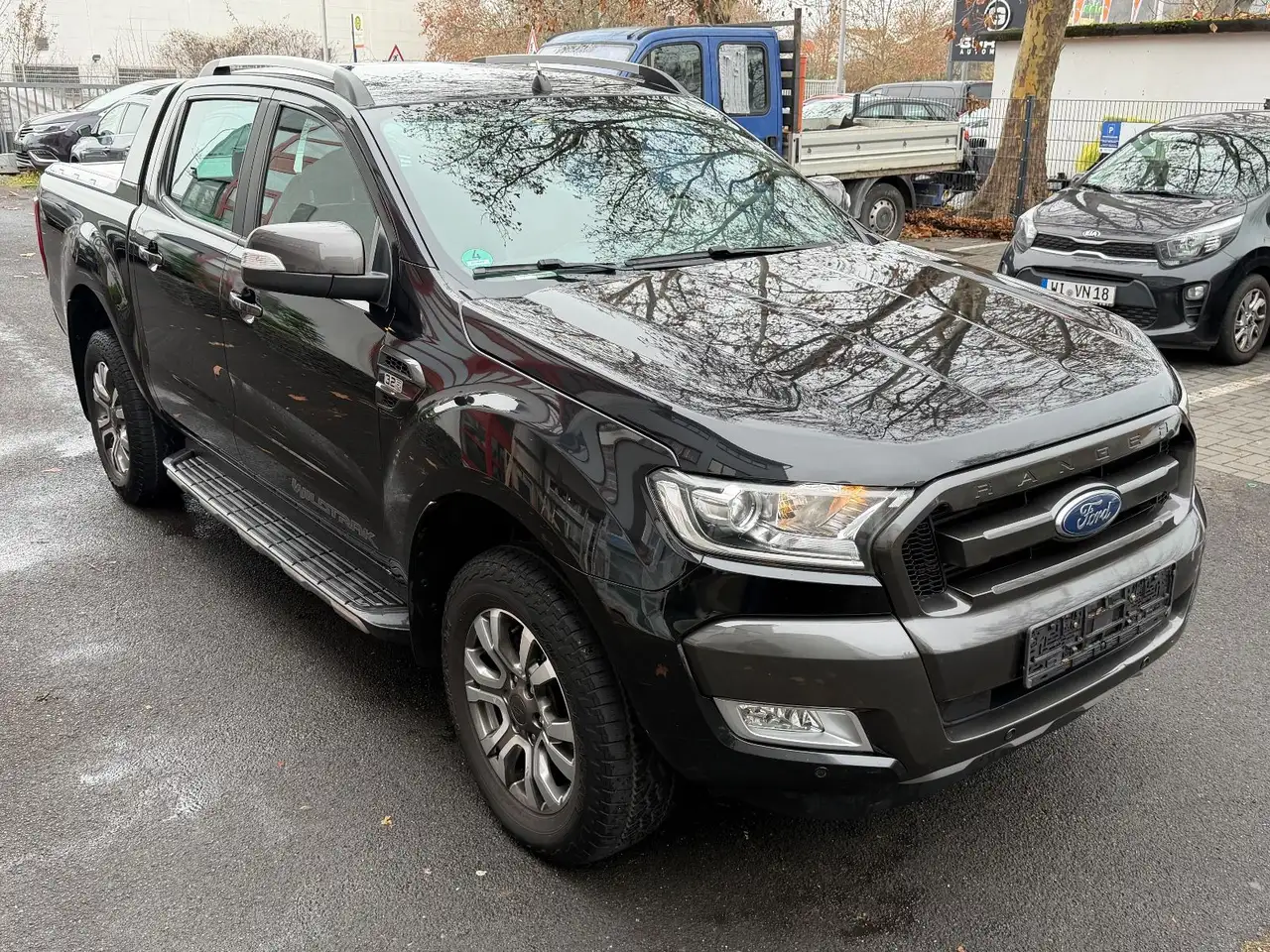 2.Sitzreihe mit Sitzbank, 3. Bremsleuchte, Airbag Beifahrerseite abschaltbar, Audio-Navigationssystem Ford SD (mit Ford SYNC), Außenspiegel elektr. anklappbar, Außenspiegel elektr. verstell- und heizbar, Außenspiegel lackiert, Außentemperaturanzeige, Batterie verstärkt, Blinkleuchte in Außenspiegel integriert, Bluetooth-Schnittstelle, Bodenleuchte im Außenspiegel, Bordcomputer, Brillenfach in Dachhimmel / Dachkonsole integriert, Dachkonsole mit Leseleuchten, Dachreling (Aluminium), Fahrassistenz-System: Notbrems-Assistent, Fensterheber elektrisch hinten, Fußmatten Teppich, Gurtstraffer, Heckscheibe heizbar, Innenspiegel mit Abblendautomatik, Intelligent Protection System (IPS), Isofix-Aufnahmen für Kindersitz, Karosserie/Aufbau: Pritsche, Doppelkabine, Kindersicherung elektrisch, Klimaautomatik 2-Zonen, Knieairbag Fahrerseite, Kühlergrill im Sport-Design, Laderaumschienen, Laderaumwanne, Lendenwirbelstütze Sitz vorn links, Lenksäule (Lenkrad) höhenverstellbar, Mittelkonsole Premium, Modellpflege, Motor 3,2 Ltr. - 147 kW TDCi KAT, Parkpilotsystem hinten, Radstand 3220 mm, Reifendruck-Kontrollsystem, Reserverad in Fahrbereifung, Schadstoffarm nach Abgasnorm Euro 6, Schalt-/Wählhebelgriff Chrom / Leder, Scheinwerfer-Assistent mit Tag-/Nachtsensor, Schmutzfänger hinten, Schmutzfänger vorn, Schwellerrohre (Edelstahl), Sitz vorn links elektr. verstellbar (8-fach), Sitzbezug / Polsterung: Teilleder, Sitzheizung vorn, Sportbügel hinten (aerodynamisch geformt, schwarz, Ladefläche), Steckdose (12V-Anschluß) im Koffer-/Laderaum, Stoßfänger hinten Sport-Ausführung mit Trittstufe, Stoßfänger Sport-Ausführung, Stoßfänger Wagenfarbe, Teppichboden in Fahrgast-/Laderaum, Türgriffe außen Wagenfarbe, Verglasung getönt, Verglasung hinten abgedunkelt (Privacy Glass), Vorbereitungs-Paket Tachograph