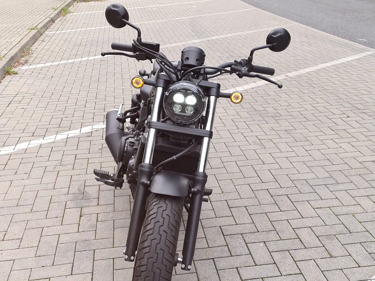 Biete meine Honda Rebel 500 (Baujahr 2021, 47 PS, ABS, LED) in elegantem Schwarz an.