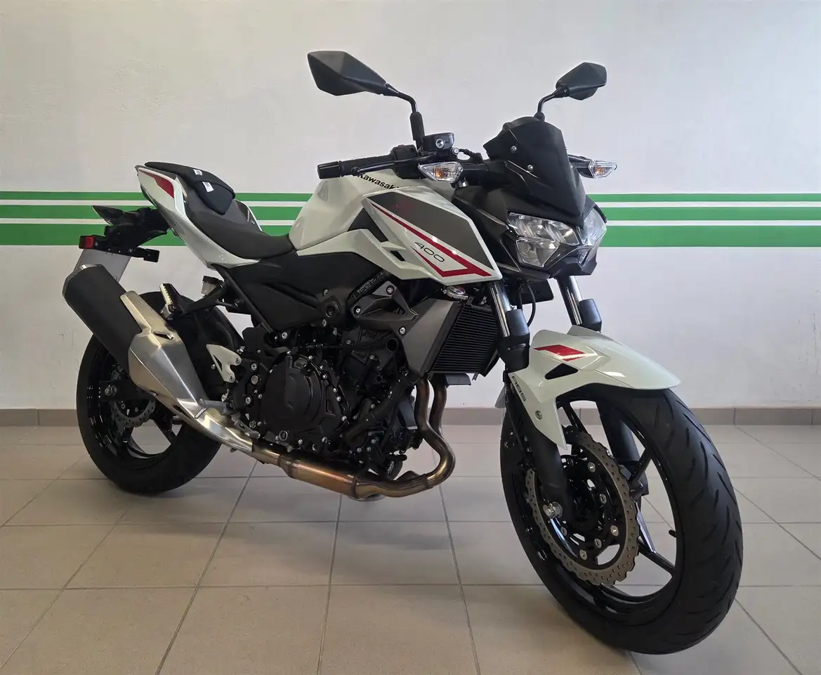 Sugomi-Styling Das aggressive Z-Supernaked-Styling geht auch bei der neuen Z400 Hand in Hand mit der Sugomi-Philosophie. Schlanke Bauelemente, ein leichtes und wendiges Erscheinungsbild resultieren in einem aufregenden Design, das begeistert. Kompakt, leicht und handlich Zahlreiche Maßnahmen zur Gewichtssenkung führten zu einem möglichst geringen Motorgewicht trotz größerem Hubraum. Dank des sauberen, schlankeren Designs ohne unnötige Teile und eines überarbeiteten Aufbaus können ein schmalerer Motor und eine Kühlung mit weniger außenliegenden Schlauchleitungen verbaut werden .Obwohl die Sitzhöhe 785 mm beträgt, kann der Fahrer dank des schlanken Designs des Sitzes (30 mm schmaler) und der Rückseite des Motors mit seinen Füßen bequem den Boden erreichen. Aufgrund der Überarbeitung von Motor und Rahmen konnte ebenfalls die Positionierung des Motors optimiert werden. Das neue Fahrwerk mit kurzem Radstand/langer Schwinge wird durch einen steilen Lenkkopfwinkel ergänzt, der für ein leichtes, natürliches Handling sorgt. Voll-LED-Scheinwerfer Neben dem markanteren Look der Z400 bietet der neu gestaltete LED-Scheinwerfer eine gute Sichtbarkeit und eine erheblich höhere Helligkeit sowie eine breitere Ausleuchtung der Fahrbahn. Drehfreudiger Motor Mit einem Hubraum von 399 cm3 bietet der neue Motor im Vergleich zu seinem Vorgänger erheblich mehr Leistung: 33,4 kW (+4,4 kW im Vergleich zur Z300). Das gleichmäßige Ansprechverhalten und starke Drehmoment bei niedrigen Drehzahlen erleichtern die Gasbetätigung für Neulinge sowie erfahrene Fahrer. ABS Auch in der neuen Z400 kommt ein leichtes und kompaktes ABS zum Einsatz, dass die Lenkbarkeit beim Bremsen in Gefahrsituationen unterstützt.