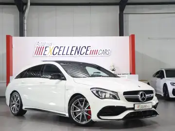 CLA 45 AMG SB 4Matic: Ein sehr gepflegtes Nichtraucherfahrzeug mit *lückenlosem Scheckheft* nur von MERCEDES-BENZ, 7-G-TRONIC-F1-AUTOMATIKGETRIEBE (SCHALTWIPPEN), MATRIX-LED-HIGH-PERFORMANCE-SCHEINWERFER, COMAND-ONLINE-NAVIGATIONSSYSTEM-Plus inkl. APPLE CAR PLAY & ANDROID AUTO, RÜCKFAHRKAMERA, el. PANORAMA-GLAS-DACH, AMG-SPORT-PAKET inkl. SPORTAUSPUFF, *ALLRAD*, DYNAMIC-AGILITY-SELECT-FAHRPROFILAUSWAHL inkl. SPORT-PLUS-MODUS, AMG-SPORTFAHRWERK, BC Bordcomputer/Reiserechner, TEMPOMAT, KLIMAANLAGE, SHZ SITZHEIZUNG, AMG-Sport-Comfort-Sitze höhenverstellbar in ALCANTARA-TEIL-LEDERAUSSTATTUNG, Start/Stop-Funktion, Keyless-Start/Go, Zentralverriegelung mit Funkschlüssel, Alarmanlage, Coming/Leaving-Home-System, 4x el. Fensterheber, el. Aussenspiegel+beheizbar & anklappbar, Servolenkung, Fullsize Airbags vorne und hinten, ESP elektronisches Stabiltätsprogramm, PDC Einparkhilfe Front & Heck, Lichtautomatik, Regensensor, Innenspiegel autom. abblendbar, CD/Mp3-DAB-Radio+USB/SD, Bluetooth-Telefonvorbereitung, Sprachdialog, Soundsystem, Multifunktions-Sport-Lederlenkrad höhenverstellbar, Armlehne, Becherhalter, Make-Up-Spiegel, 5xKopfstützen, Isofix Kindersitzvorrichtung, Durchlademöglichkeiten, Colorverglasung, getönte Heckscheiben, Chrompaket, Dachspoiler, el. Heckklappe, 3. Bremsleuchte, LED-Tagfahrlicht, LED-Rückleuchten, GANZJAHRESREIFEN auf 18-ZOLL-AMG-ALUFELGEN und vieles mehr. Anschauen lohnt sich.