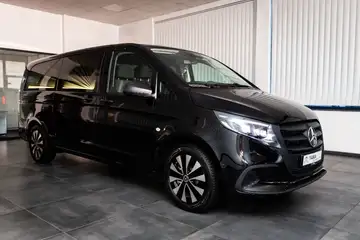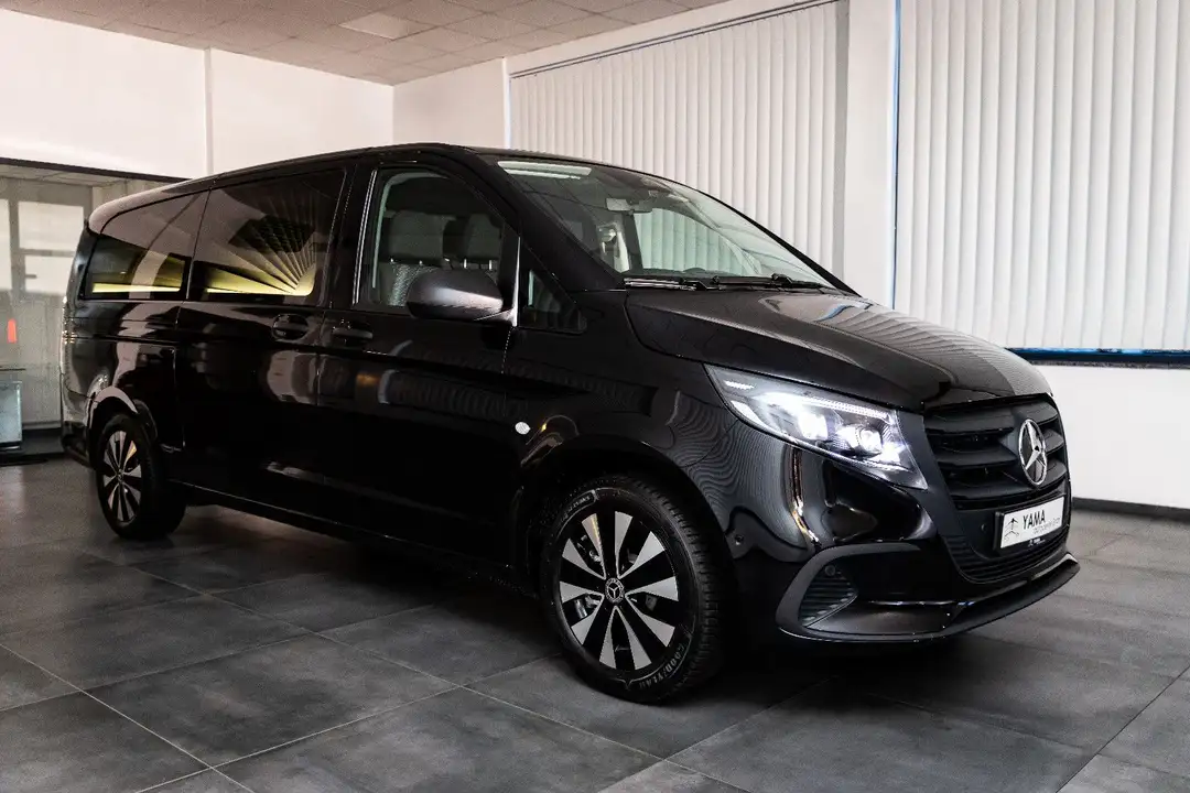Anhängerkupplung: Elektrik für Anhängersteckdose, Außenspiegel elektr. anklappbar, Fahrassistenz-System: Verkehrs-Informations-System Live Traffic, Fahrassistenz-System: Verkehrszeichenerkennung, Fenster für hintere Türen / Heckklappe mit Wisch-/Waschanlage, Fenster im Lade-/FG-Raum: - feststehend, hinten, Fenster im Lade-/FG-Raum: - feststehend, vorn links, Fenster im Lade-/FG-Raum: - feststehend, vorn rechts, Feststellbremse elektrisch, Fußmatten Velours, Fzg. ohne Laderaumtrennwand, Fzg. ohne Verzurrösen, Hold-Funktion, LM-Felgen 7x17 (Aero-Rad), Metallic-Lackierung, Multibeam LED inkl. Fernlichtassistent Plus, Navigationssystem für Multimediasystem MBUX, Park-Paket mit Rückfahrkamera, Rückspiegel innen, Schiebetür Lade-/Fahrgastraum links, Sitze im Fahrerhaus: Beifahrersitz als Zweiersitz, Smartphone-Integration (Apple CarPlay und Android Auto), Stoßfänger und Anbauteile in Wagenfarbe lackiert, Verglasung hinten abgedunkelt / Schwarzglas, Winter-Paket, Zul. Gesamtgewicht 3,10 t