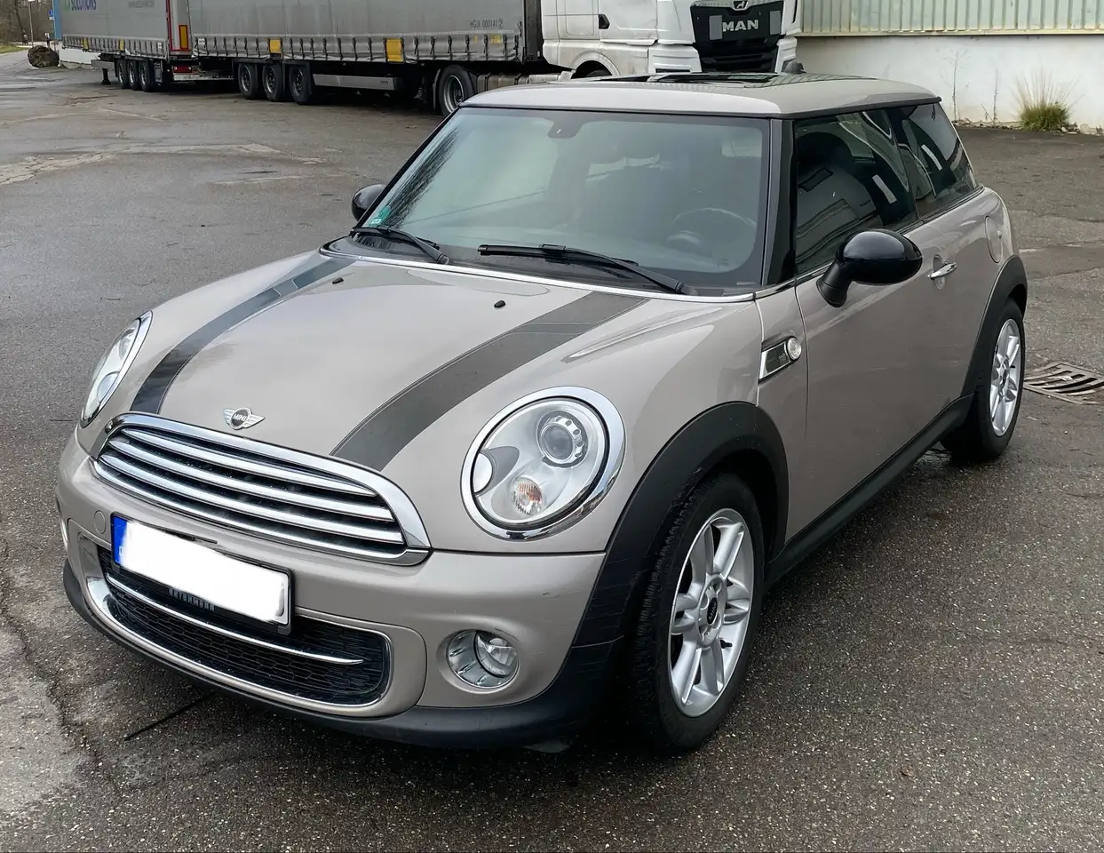 Gut erhaltene Sommerreifen auf schwarzen original MINI Alufelgen auf Anfrage zusätzlich zu erwerben.