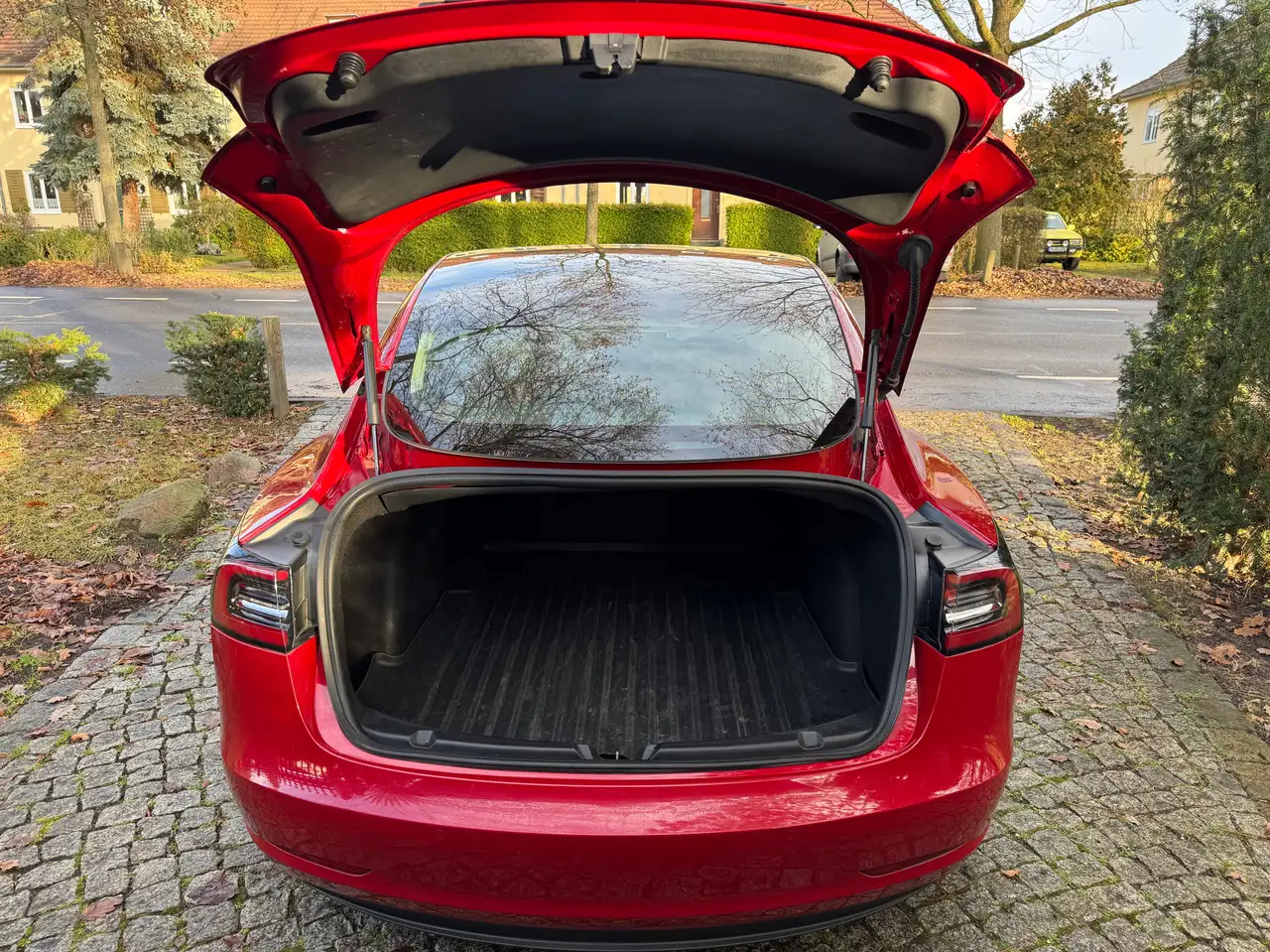Carport-Gepflegter TESLA im TESLA-rot. Top-Zustand
