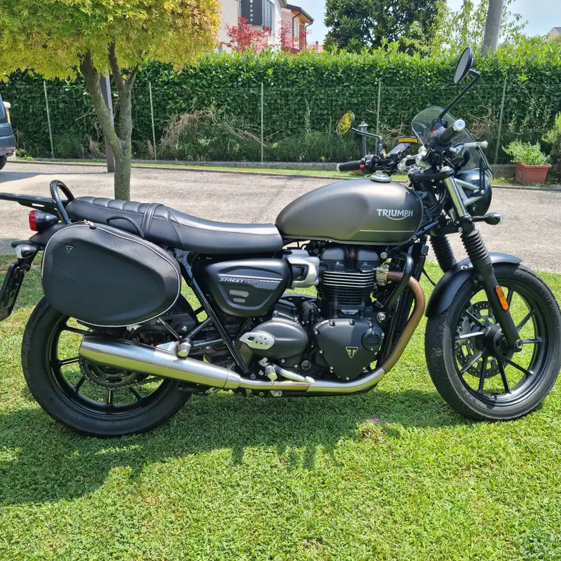 Vendo per cambiate esigenze familiari Triumph Street Twin 900 cc immatricolata 05/2021 km 18500, ultimo tagliando 02/2025, revisionata 05/2025, bollata fino gennaio 2026. Completa di borsoni originali (valore e.700,00), cupolino antivento, fari a LED, doppio cavalletto (centrale e laterale). Perfette condizioni tenuta maniacalmente. prezzo leggermente trattabile